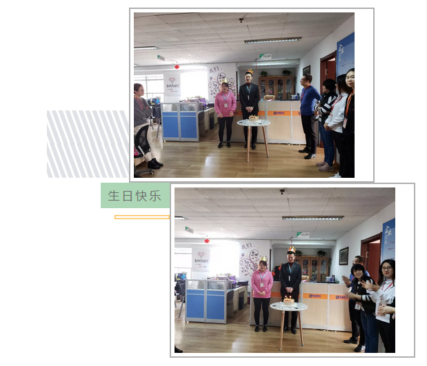 同事們紛紛為他們送去了祝福,一起唱生日歌,許愿,吃蛋糕。