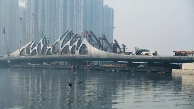 據(jù)悉,連島一號(hào)橋位于青島西海岸新區(qū)靈山灣影視文化產(chǎn)業(yè)區(qū)內(nèi),是連接濱海大道和星光島的核心工程,該橋北接萬(wàn)達(dá)茂,南聯(lián)大劇院,因其獨(dú)特的珊瑚貝造型在青島橋梁界獨(dú)樹一幟。橋梁長(zhǎng)度290米,寬度為36米,雙向6車道,設(shè)計(jì)車速為40km/h,為景觀性橋梁。