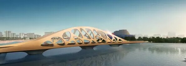 的珊瑚精神植入景觀橋梁的形象特質(zhì)中。貝殼的弧形成含珠之勢(shì),橋身的鏤空紋理是對(duì)珊瑚外形進(jìn)行了簡(jiǎn)約、抽象的藝術(shù)化勾勒,整體造型簡(jiǎn)約流暢、寓意深刻,形成西海岸一朵綻放的“珊瑚貝”。橋梁整體結(jié)構(gòu)呈拱線型,流暢、渾然一體。