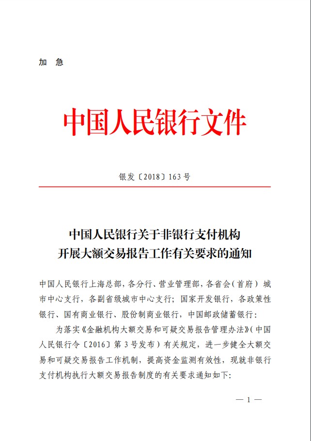 以下為《中國(guó)人民銀行關(guān)于非銀行支付機(jī)構(gòu)開展大額交易報(bào)告工作有關(guān)要求的通知》:
