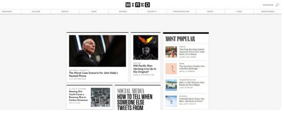 突出品牌的方式有很多,內(nèi)容是其中很重要的部分,同時視覺和體驗也不容忽略。比如在技術(shù)類數(shù)字雜志中極為出名的 Wired ,也就是《連線》雜志。獨樹一幟的 LOGO,黑白分明的配色融入整個數(shù)字雜志的網(wǎng)站設(shè)計,和 LOGO 以及品牌本身遙相呼應(yīng)。
